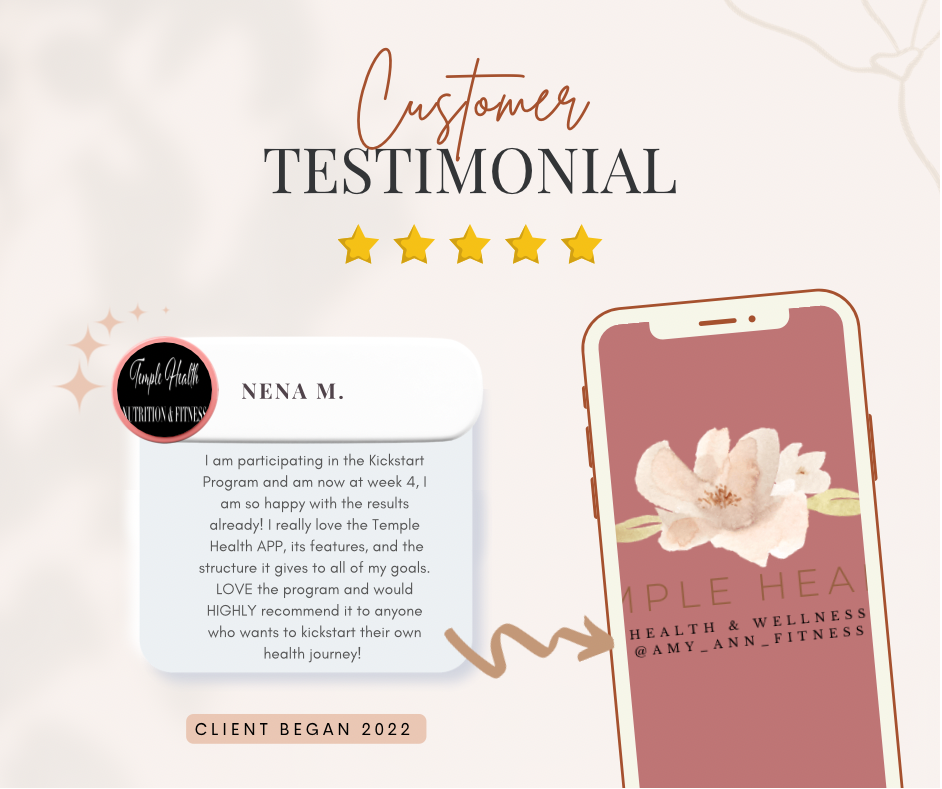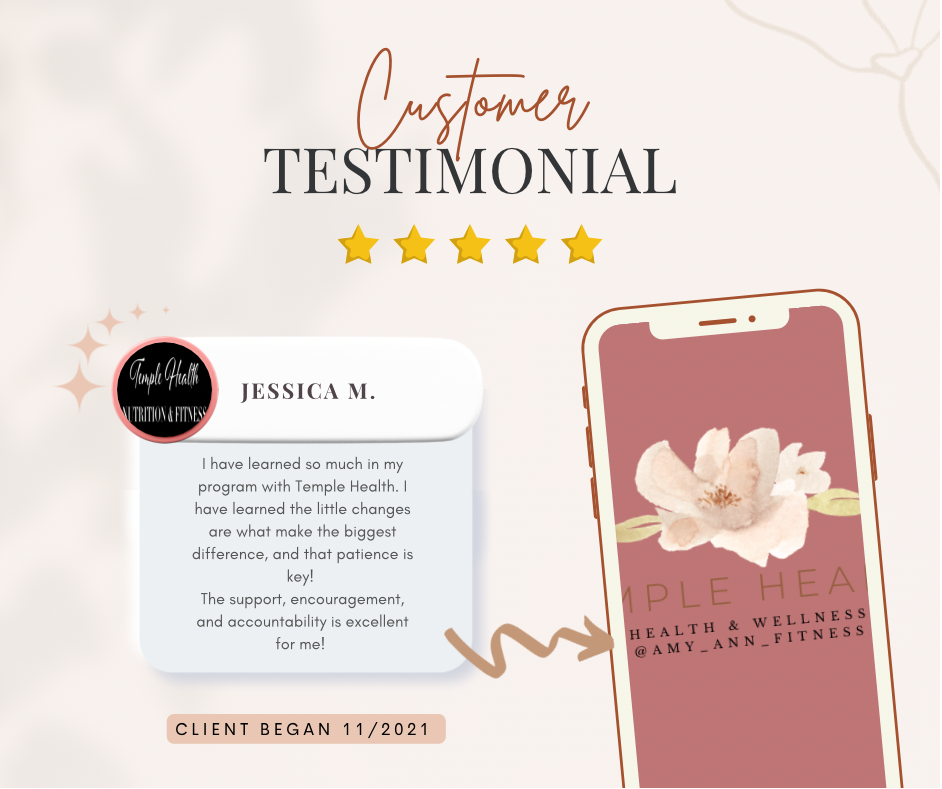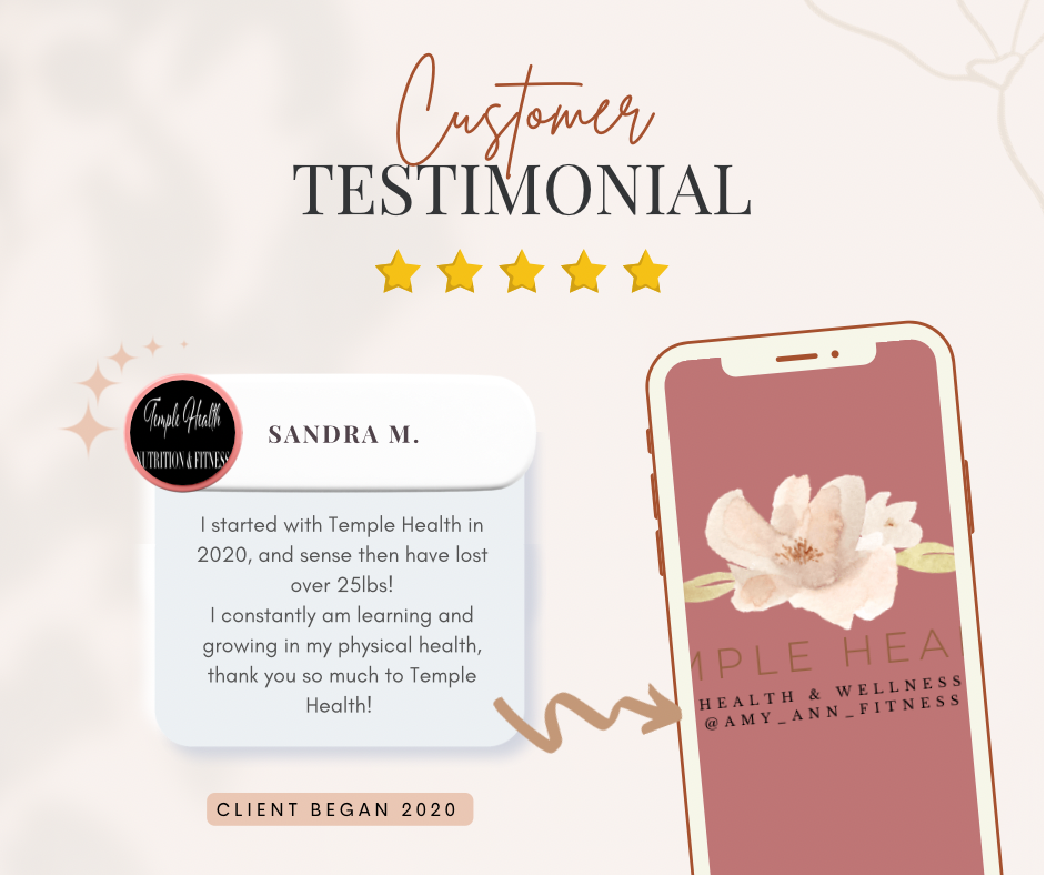 Temple Health launched in Southern California in 2020 and has since expanded to serve women online from across the U.S.! Temple Health's unique Online Coaching Model includes Nutritional Coaching, Nutritional Education, Fitness Coaching, a Strength Training Program, 1-1 Accountability, Weekly Check-Ins, Virtual face-to-face Appointment bookings, Online Personal Training, and a Women's Weight Loss Program.